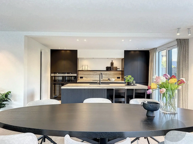 Le séjour, décoré avec beaucoup de goût, est suffisamment spacieux pour accueillir un coin salon et salle à manger, ainsi qu'une cuisine ouverte avec îlot, équipée de tout le luxe et le confort nécessaires.